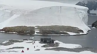 The Falkland Islands Dependencies Survey established a base on Winter Island in 1947, Base F (Argentine Islands).[1] The main hut, built on the site of the old BGLE hut, was named "Wordie House" after Sir James Wordie, a member of Shackleton's Imperial Trans-Antarctic Expedition who visited during its construction.[2]