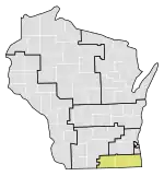 Wisconsin's 1st congressional district is a congressional district of the United States House of Representatives in southeastern Wisconsin, covering Kenosha County, Racine County, and most of Walworth County, as well as portions of Rock County and Milwaukee County. The district's current Representative is Republican Bryan Steil.