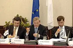 Schüssel with President of the European Commission José Manuel Barroso and Dutch Prime Minister Jan Peter Balkenende with in the EPP Summit in Meise, 15 May 2006