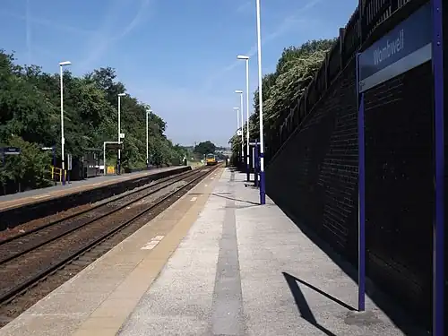 Wombwell railway station is a railway station serving the town of Wombwell in South Yorkshire, England. The station is 12 miles (19 km) north of Sheffield on the Hallam and Penistone Lines. The station was opened by the Midland Railway on 1 July 1897, and between 25 September 1950 and 20 February 1969 was known as Wombwell West to distinguish it from Wombwell's other railway station, Wombwell Central, which closed in 1959.[1]