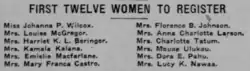 443. ^ "Suffragists Hold Special Meeting; Plans for Future". Honolulu Star-Bulletin. October 18, 1912. Retrieved 2020-12-09.