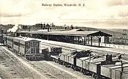 Woodville was the railhead of the line from Napier until the line was completed through the Manawatū Gorge, connecting it with Palmerston North in 1891. It was not until 1897 when the Wairarapa Line finally reached its northern terminus that Woodville again became a station of some importance, 10 years after it opened. As a junction, Woodville has hosted a variety of services from the Wairarapa, Manawatū, and Hawkes Bay regions,[1] but has been closed to passenger services since 2001.[2]