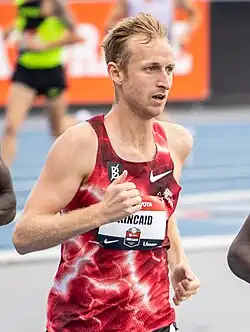 William "Woody" Kincaid (born September 21, 1992)[1] is an American long-distance runner. He is a two-time national champion in the 10000 metres, with victories at the USA Outdoor Track and Field Championships in 2021 and 2023. He has held the North American indoor record in the 5000 metres (12:51.61) since 2023. Kincaid represented the United States at the 2020 Summer Olympic Games, the 2022 World Athletics Championships, 2023 World Athletics Championships, and the 2024 Summer Olympic Games. He won a gold medal in the 5000 metres at the 2022 NACAC Championships.