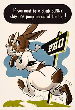 Rabbit, in sailor's suit, running in direction of sign pointing to ("pro"), 1945, 'U.S. Government Printing Office)
