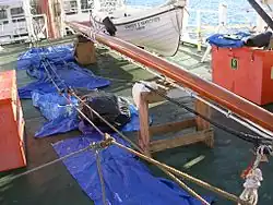 In the days of hemp anchor cable, worming of chain was used, when anchoring on a rocky bottom, to protect the anchor cable from chafing through.[2] This was not then covered with parcelling and serving, but is included here as a further example of the utility of the technique.