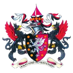 The company ranks 106th in the order of precedence for the city livery companies. Its motto, A Natione ad Nationem, translates from Latin as "From Nation to Nation", reflecting its international character.[5] The arms of the company are blazoned: Per pale Sable and Gules a Dragon rampant Argent within an Orle of ten Bezants.