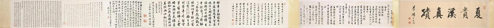 The Ministry of Rites was responsible for overseeing the civil service examinations. Xia attempted to influence the examination boards to favor candidates who used direct and clear language, while rejecting essays that were complex and unclear. He also paid attention to collections of essays published by successful candidates, which were meant to serve as instructional materials for students, but he was dissatisfied with the quality of these essays and demanded that they be thoroughly edited before publication to meet the desired exemplary standard.[27] The condition of the state-run Imperial University was problematic. Many students who advanced to the university from prefectural and county schools were too old, of low quality, and generally not useful for the state administration. This was due to the flawed selection system, which favored only a small percentage of students in local schools known as "stipend students" who received state support. As a result, these coveted spots were often obtained by students from wealthy families who could afford to purchase them from the current incumbents. Among the stipend students, those who had been waiting the longest were sent to the university according to waiting lists, but they often failed the provincial examinations repeatedly.[28] Xia did not attempt any major reform, but instead implemented a rule that students who were deemed unfit and too old upon arrival at the university would be sent home, but would still retain their status and privileges as students. He also allowed students from distant provinces who had failed the entrance examinations to remain in Beijing until the next examinations. In an effort to raise the prestige of the university, he organized an imperial visit in 1533, which was successful.[28] Additionally, Xia tried to assist students from peripheral regions. For example, Liaodong students were allowed to take their provincial examinations in Beijing to avoid the arduous journey to Shandong (the Liaodong Peninsula belonged to Shandong Province, but after the interruption of sea communication in the late 15th century, students had to bypass the entire Bohai Sea). Similarly, Guizhou students were given their own provincial examinations in Guilin, the provincial capital, instead of having to travel to neighboring Yunnan Province.[29]