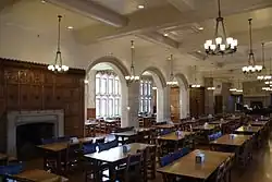 The institution is known for its scholarly orientation; a relatively large number of its graduates (9%) choose careers in academia within five years of graduation, while a relatively low number (46%) choose to work in law firms five years after graduation.[11] Another feature of Yale Law's culture since the 1930s, among both faculty and student graduates, has been an emphasis on the importance of spending at least a few years in government service.[12] A similar emphasis has long been placed on service as a judicial law clerk upon graduation.[13] Its 4.5:1 student-to-faculty ratio is the lowest among U.S. law schools.[14]