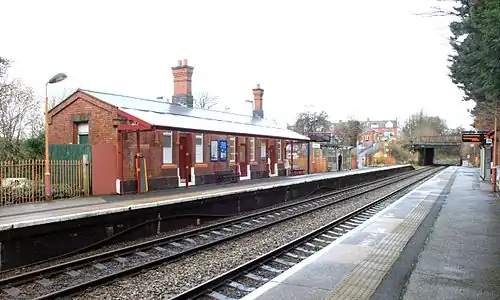 The station platforms are accessed by ramps from Highfield Road, which crosses over the railway on a bridge just north of the station. The ticket office is located at road level, adjacent to the bridge.[1]