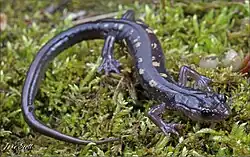 The yellow-spotted woodland salamander (Plethodon pauleyi) is a species of salamander in the family Plethodontidae. It is endemic to the United States, where it is distributed throughout the Cumberland Plateau in the states of Kentucky and Tennessee. Its natural habitat is temperate forest. It was long considered to be both an isolated western population and a unique yellow-spotted color morph of the Wehrle's salamander (P. wehrlei), but a study published in 2019 found it to be a distinct species.[2][3]