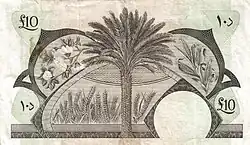 In 1984, the Bank of Yemen introduced 500 fils as well as 1 dinar, 5 dinar, and 10 dinar notes that are like the preceding issues of South Arabia, except the English text and printer's imprint have been removed from the front, the name of the issuer has changed and now appears on the back, along with the name of the capital (ADEN).[2]