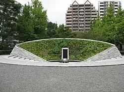 Following World War II, the park also became the location of the main memorial to the victims of the Bombing of Tokyo in 1944 and 1945. The ashes of 105,400 people killed in the raids were interred in Yokoamichō Park between 1948 and 1951.[2] A memorial to the people killed in the raids was opened in the park in March 2001.[3]