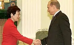 Yoriko Kawaguchi (川口 順子, Kawaguchi Yoriko; born January 14, 1941) is a Japanese politician. Born in Tokyo, she holds a BA in international relations from the University of Tokyo, and an MPhil in economics from Yale University, where she became a member of President's Council on International Activities. Currently, she is a professor at the Meiji Institute for Global Affairs in Tokyo.[1]