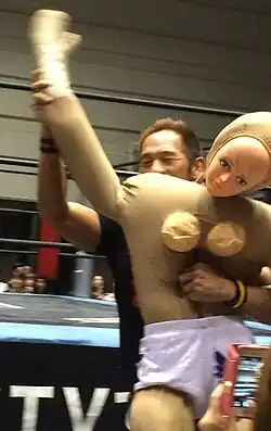 Yoshihiko (ヨシヒコ, Yoshihiko) is a professional wrestling character and roster member of Japanese professional wrestling promotion DDT Pro-Wrestling (DDT).[2] The character of Yoshihiko has been portrayed exclusively by a series of inflatable or stuffed female sex dolls, but he is treated as a real competitor within kayfabe and has held four different championship titles.