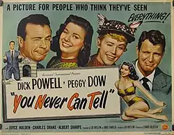 You Never Can Tell is 1951 American comedy film directed by Lou Breslow and starring Dick Powell, Peggy Dow and Joyce Holden. The film was loosely remade as Oh! Heavenly Dog (1980) starring Chevy Chase.[1]