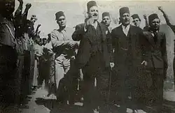 The Wafd Party, the mainstream liberal party, viewed Young Egypt with suspicion, believing it to be controlled opposition sponsored by the king. After the Wafd's victory in the 1936 elections, the Wafdist leader Mostafa el-Nahas accused Young Egypt with collaborating with a foreign power, implying Italy.[42] This incited a series of street battles between the Green Shirts and the Blue Shirts – the Blue Shirts being the Wafdist youth branch.[43] Frequent clashes took place between the Green Shirts of Young Egypt and the Blue Shirts of the Wafd, culminating in an unsuccessful attempt on the life of el-Nahas by a member of Young Egypt on 28 November 1937.[44][45] While there are similarities between the Green Shirts and the fascist paramilitaries of the Italian Black Shirts and Nazi Brown Shirts, a key distinction is that Young Egypt's fighters were college students fighting with clubs and bricks – not demobilized, brutally experienced and disillusioned World War I veterans.[46][47] These "shirt" organizations would participate in marches and street brawls. After numerous incidents of violence between militant students, Egypt banned paramilitary organizations in March 1938.[48]