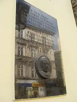 Plaque at ulica Grodzka 47, Kraków, commemorating Jachimecki's residence there