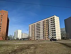 Ziepniekkalns is a neighborhood in Riga, Latvia. It is located in the Pārdaugava district of Riga close to the city's southern border. Ziepniekkalns is the newest out of all Riga's neighborhoods.[1] It was developed in the late 1980s and early 1990s and primarily consists of Soviet-era 10-story apartment buildings. However, many older buildings constructed in the early 1960s still exist in Ziepniekkalns. There is a stark contrast between the older 3-story buildings and the newer 10-story ones. In the mid-1990s, the Route19 trolleybus line was extended to the heart of Ziepniekkalns, with its final stop now at the Mego supermarket. The trolleybus route 4 runs through the city center to Jugla.[2]